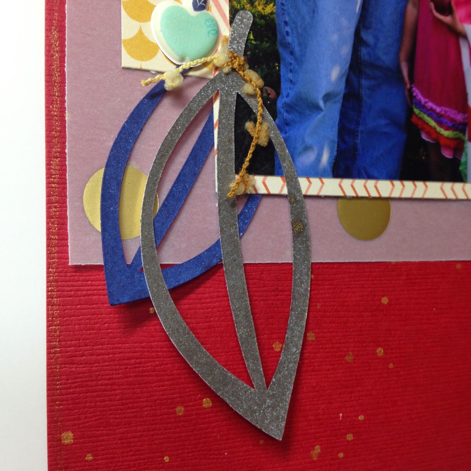 Here is the companion page to the layout I posted the other day. I made these on the same day trying to make them cohesive, but not necessarily to be a two-page spread. Again, most everything for this layout came from the November 2013 Scraptastic Home kit. All die cuts were done on my silhouette cameo and colored to match using various mists from my stash (mostly Studio Calico).