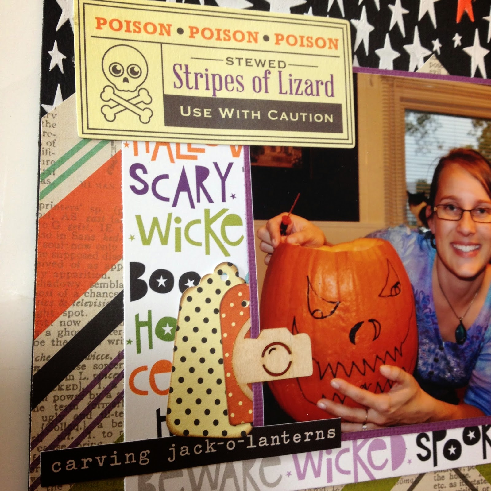 I used the October 2014 Scraptastic Kit - Thriller for this layout. The pictures were of my daughter and I carving pumpkins at Halloween in 2013.