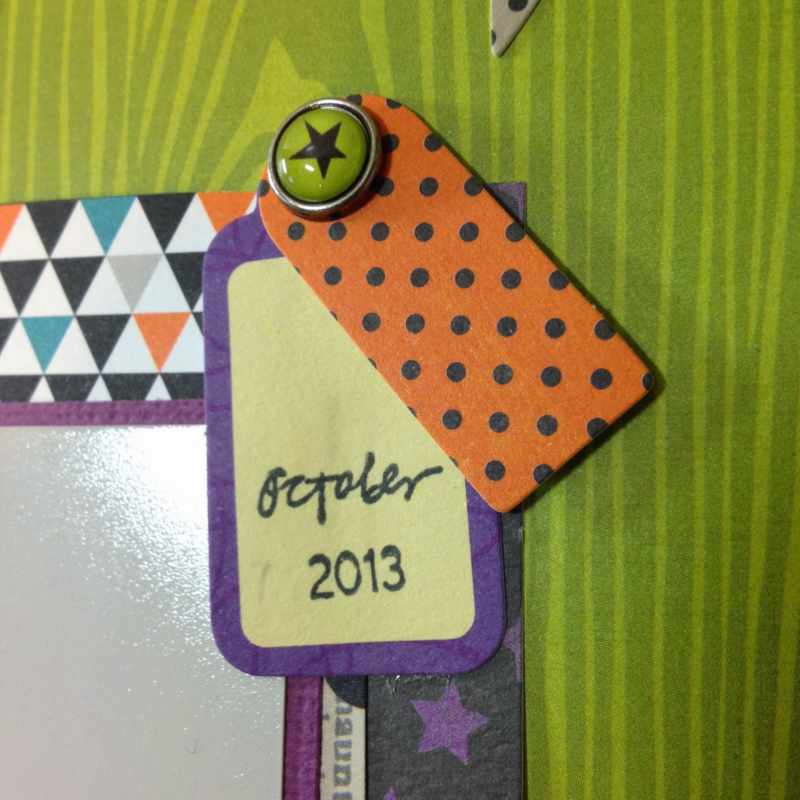 For this layout I kept it pretty simple. I love the green woodgrain so I wanted a lot of it to show. I utilized the arrows that were already on the background and worked my picture and embellishment clusters around them. To add just a bit more to the background I added the stars that came in the kit in a diagonal across the page from right to left.